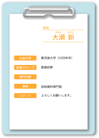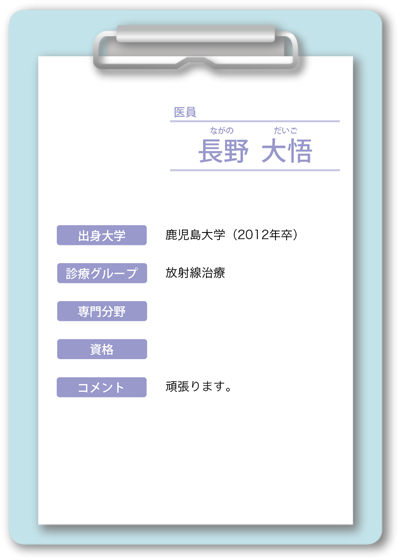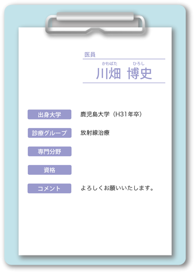 長谷川 知仁(はせがわ ともひと) 阿久根 健太郎(あくね けんたろう) 小野原 信一(おのはら しんいち)嘱託医 |